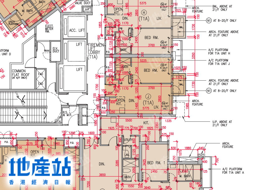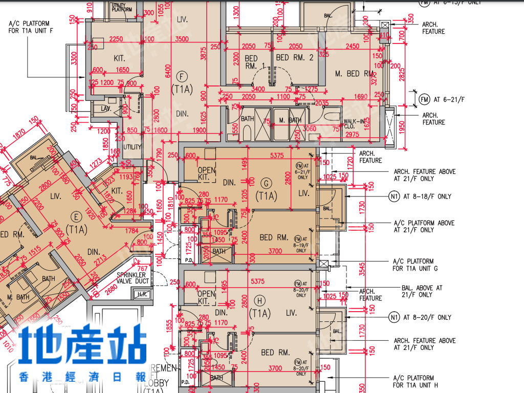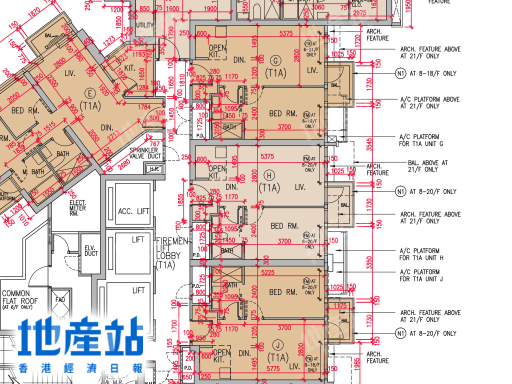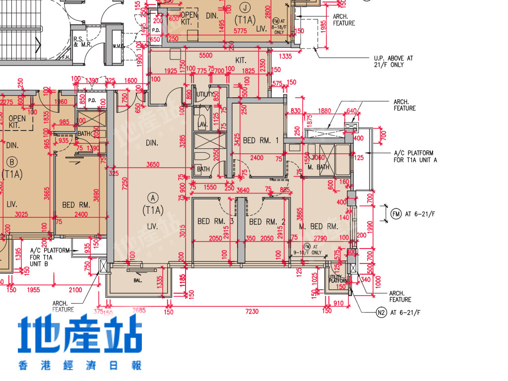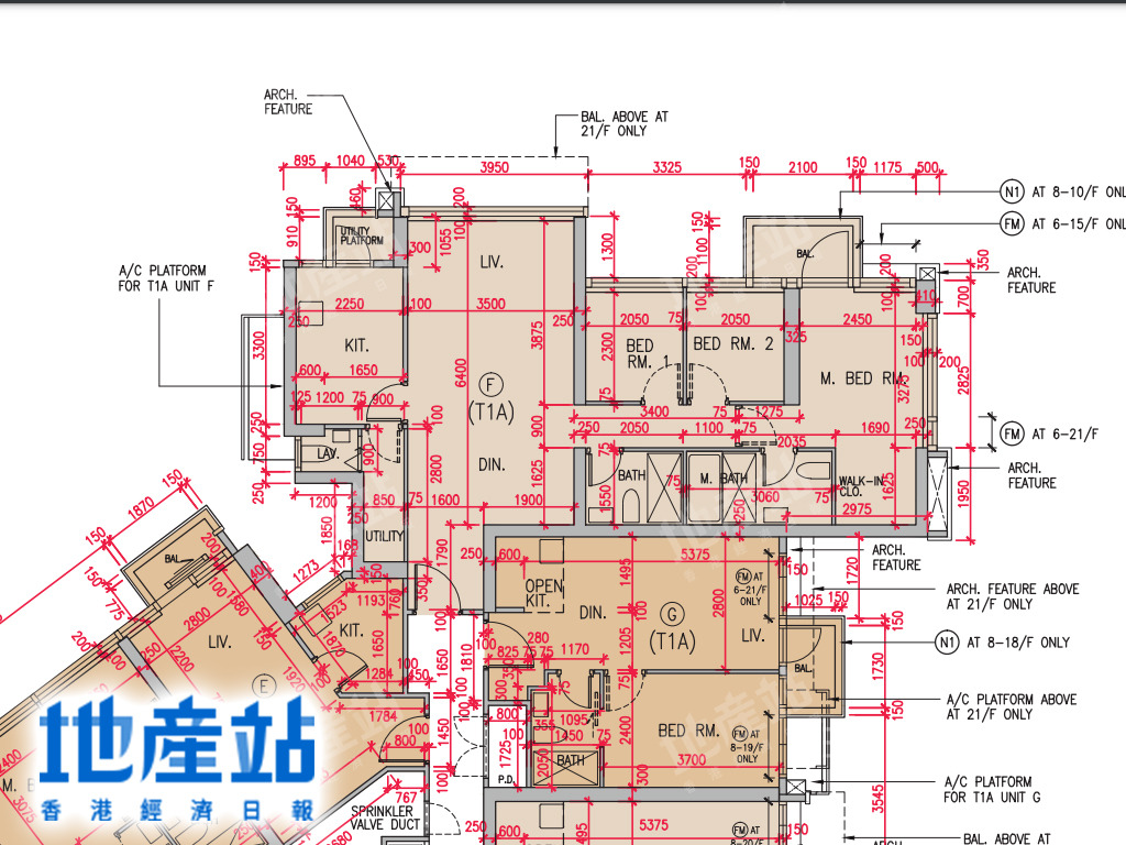 1A座6至21樓F室 937 3房(連套房)及工作間連廁 東北偏東方