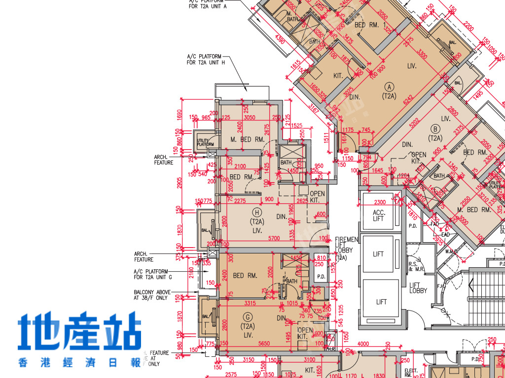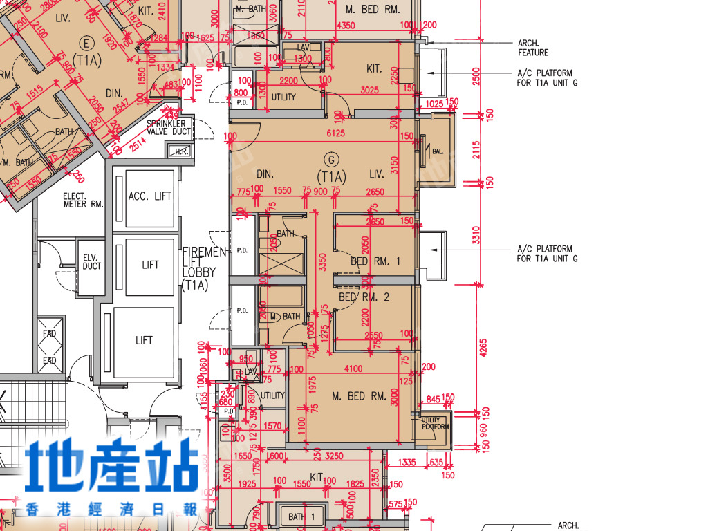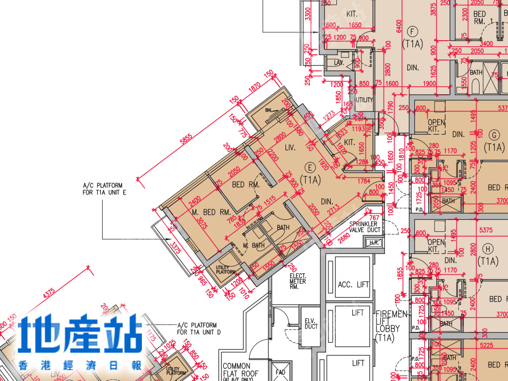 1A座6至40樓E室 572及581 2房(連套房) 東北