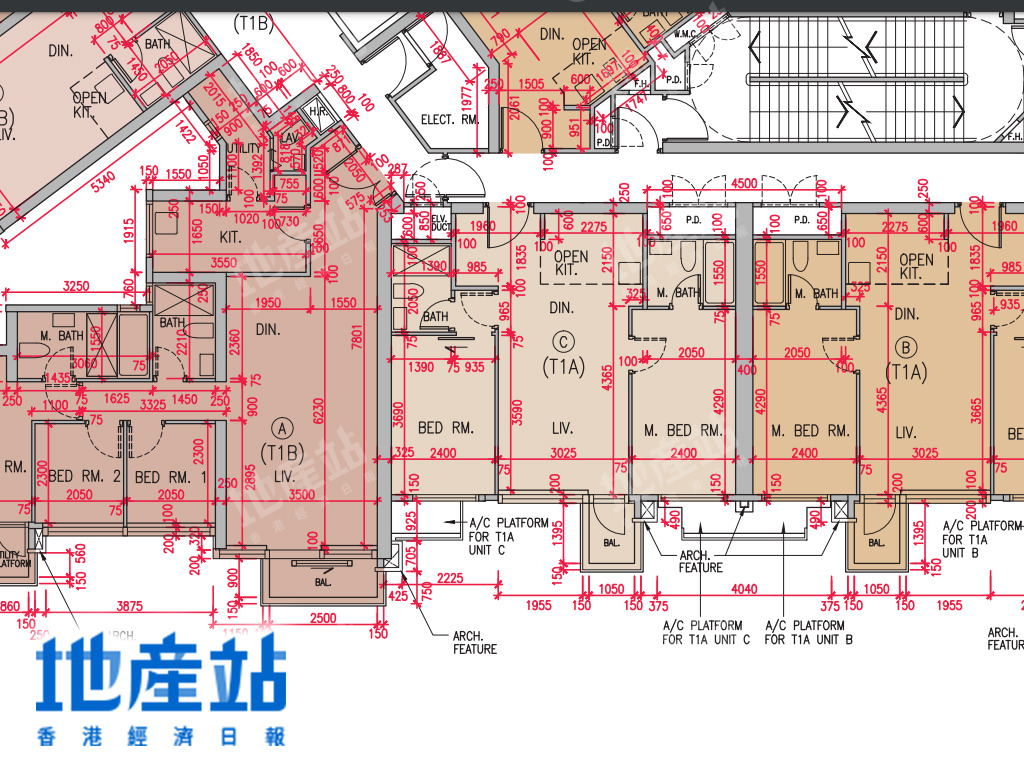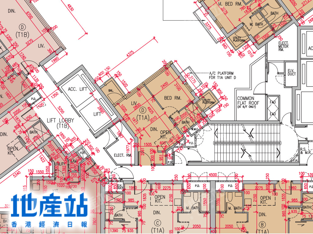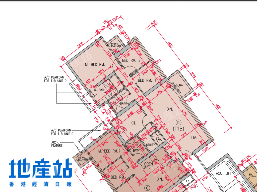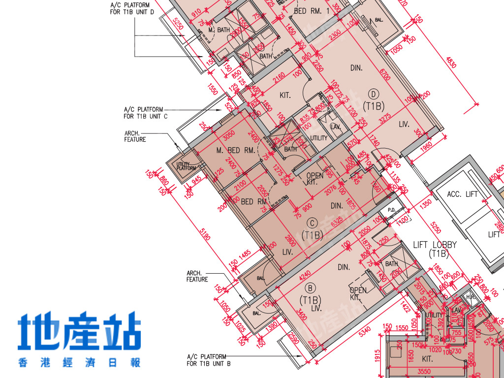 1B座6至42樓D室 882 3房(連套房)及工作間連廁 東南偏東