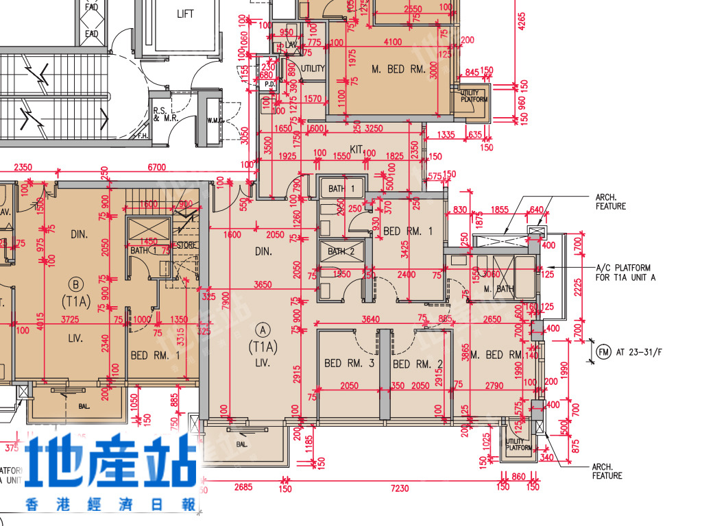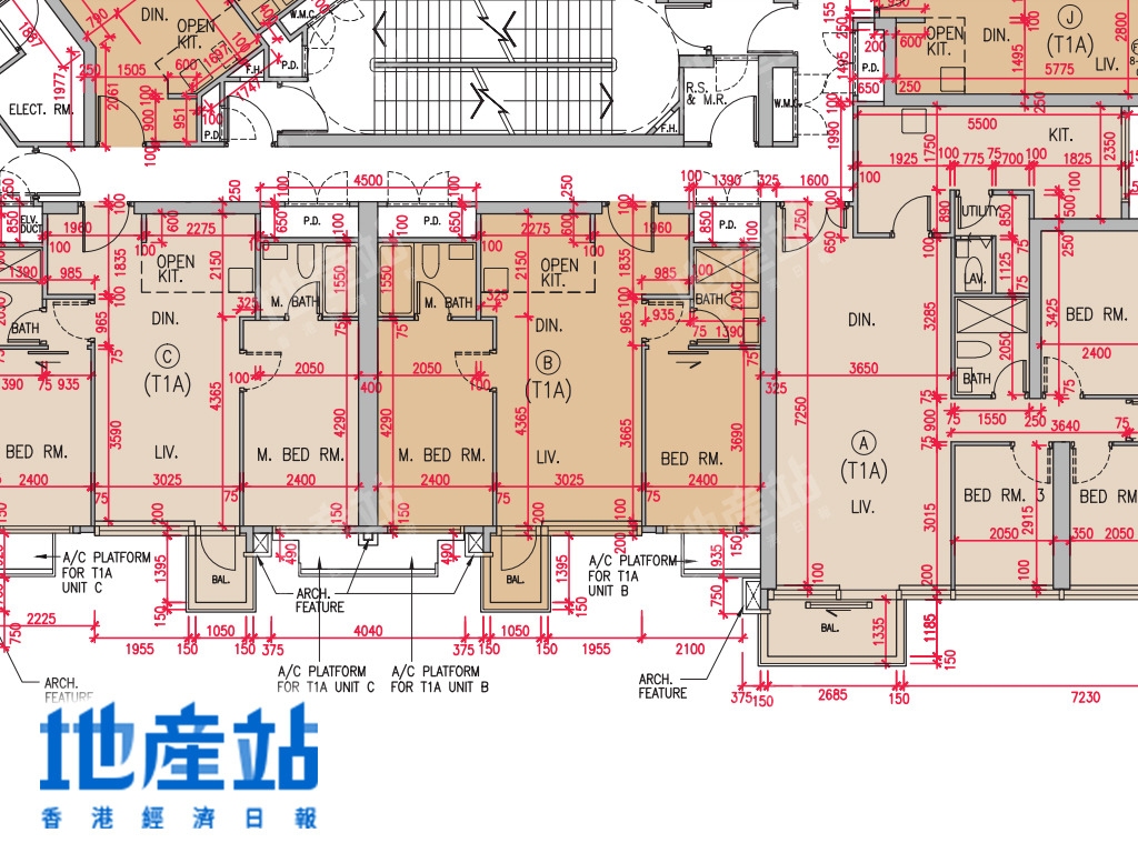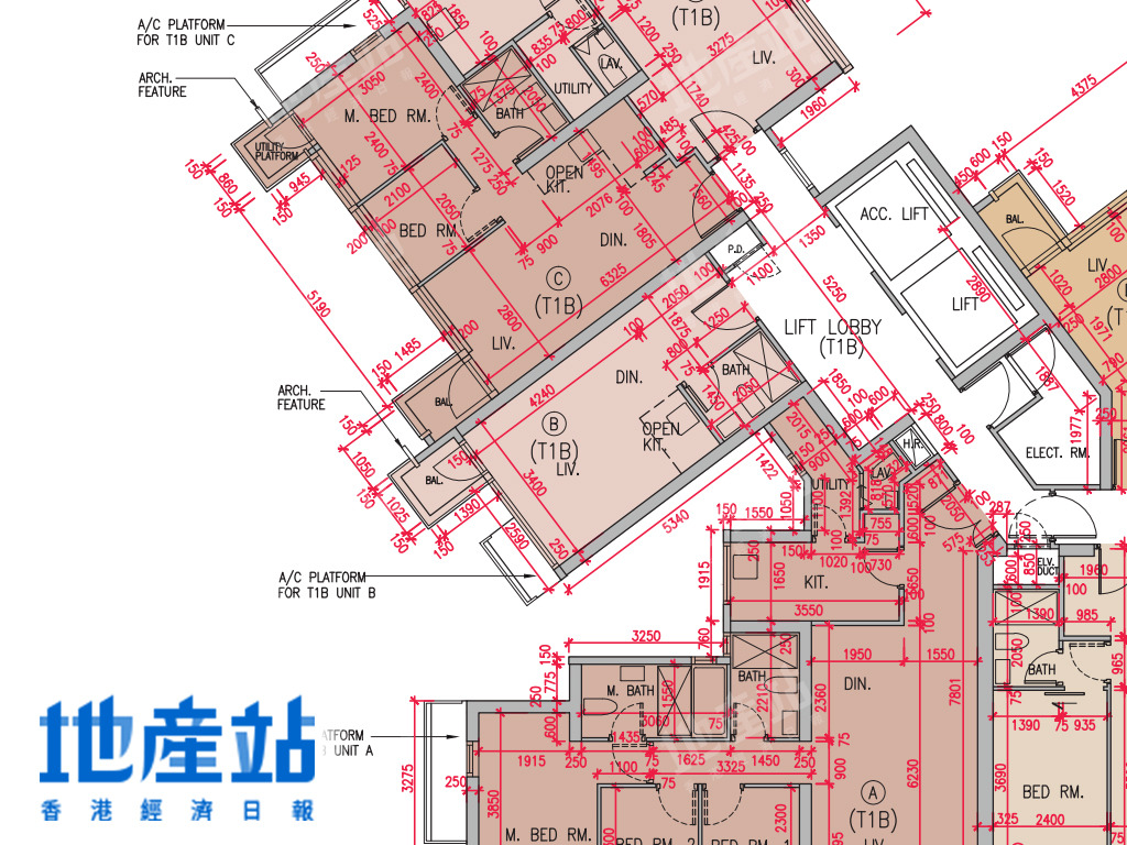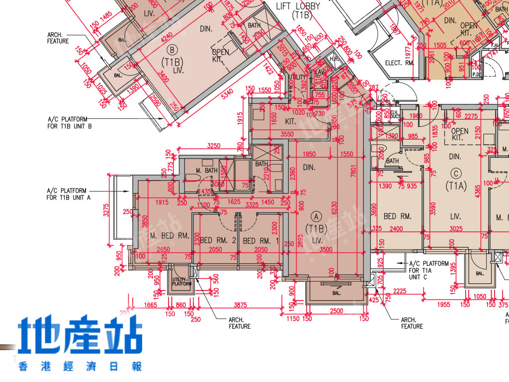 1B座6至42樓D室 882 3房(連套房)及工作間連廁 東南偏東