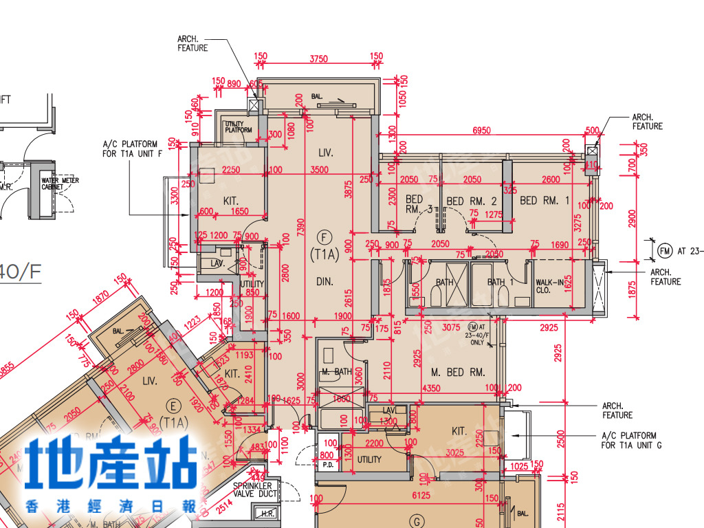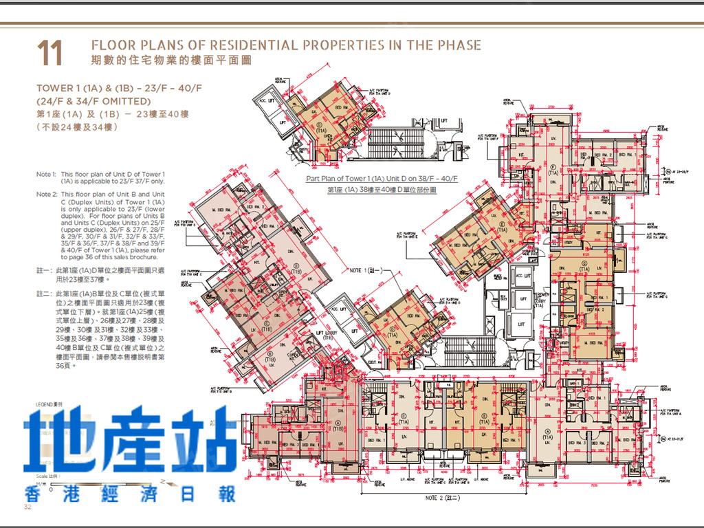 1A座22至40樓F室 1218 4房(連雙套房)及工作間連廁 東北偏東方
