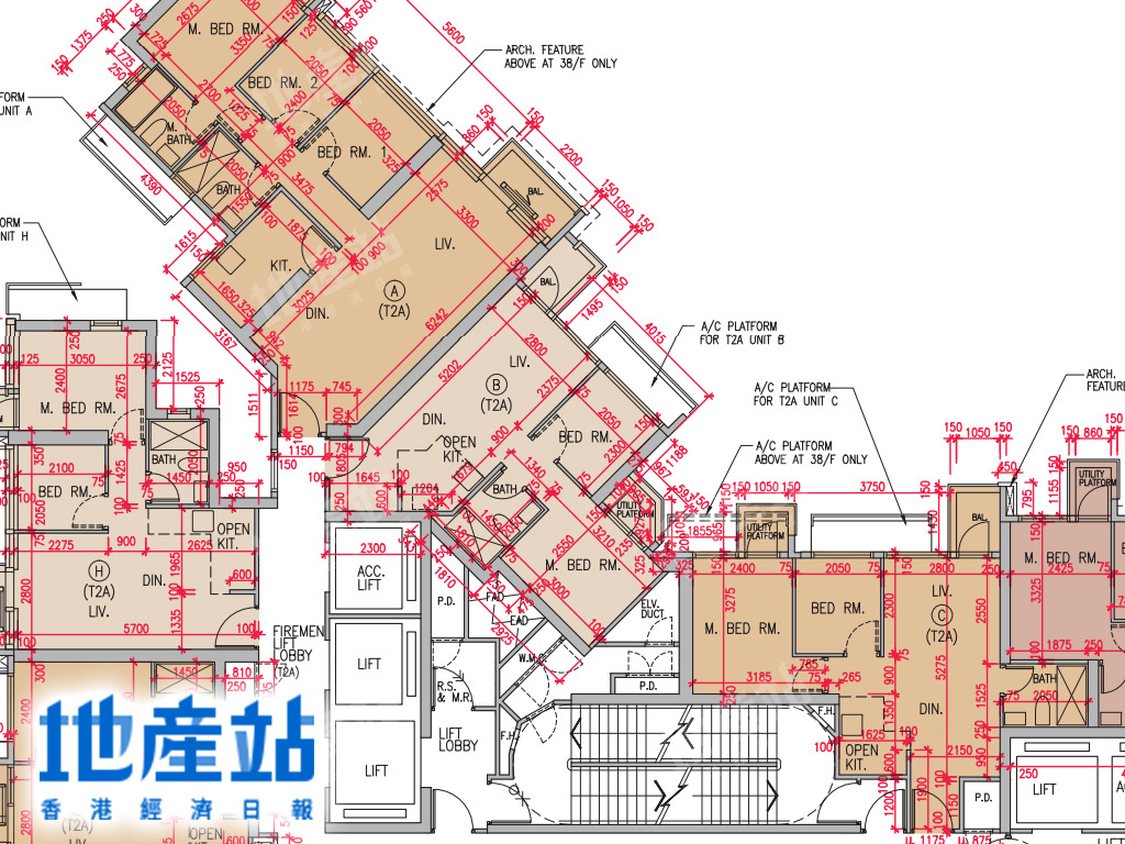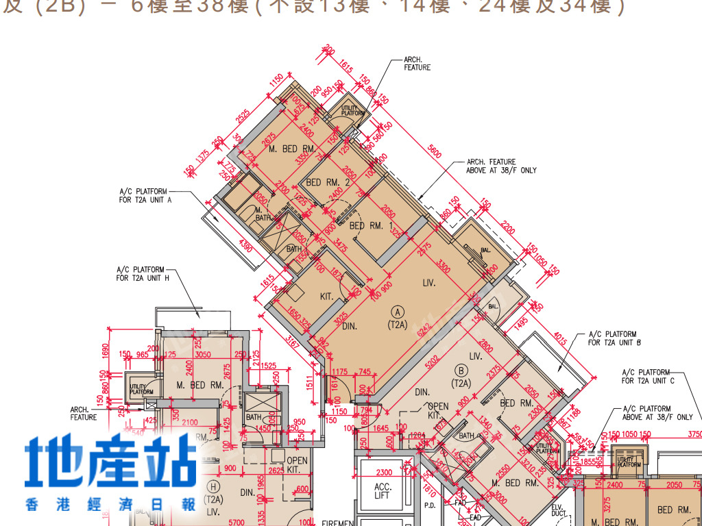 2B座6至38樓A室 856 3房(連套房)及工作間連廁 西北方
