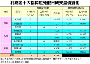《利嘉閣十大指標屋苑假日二手實況》 新盤向隅客回流二手 買家對後市信心大增 十大屋苑周末錄18宗買賣 按周回升13%