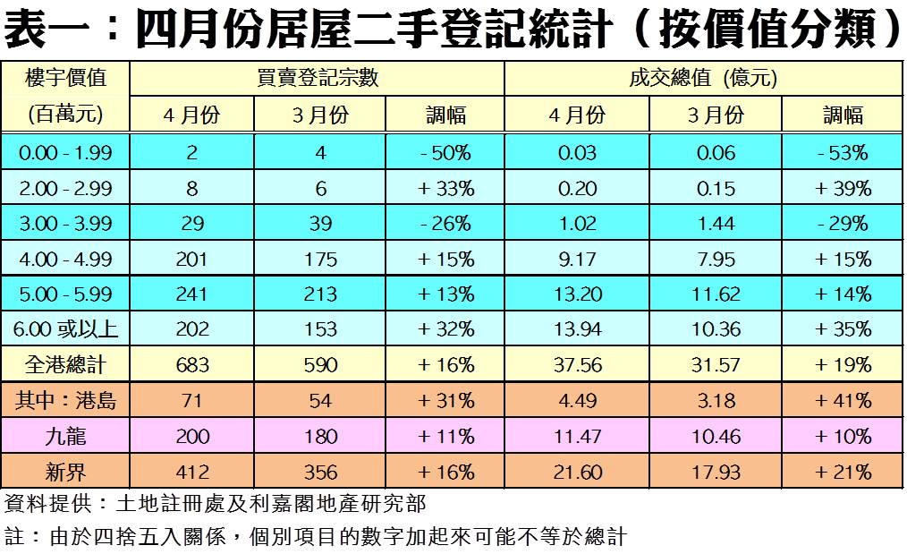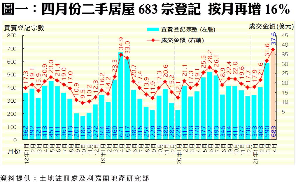 四月二手居屋登記683宗 逾7年半新高 交易金額37.6億元 有紀錄以來最多