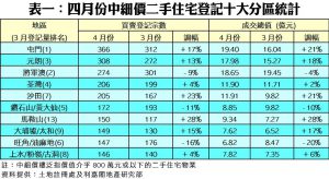 四月中細價樓買賣佔比66.5% 未脫谷底 樓市氣氛旺 800萬元以上比例本月料復升