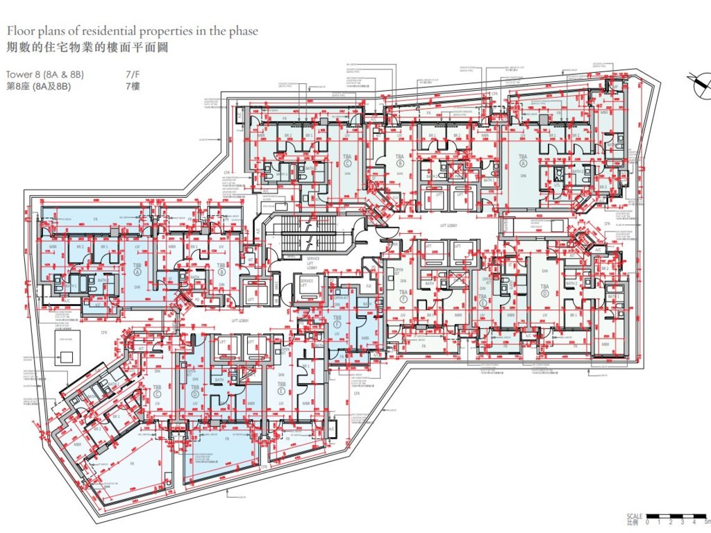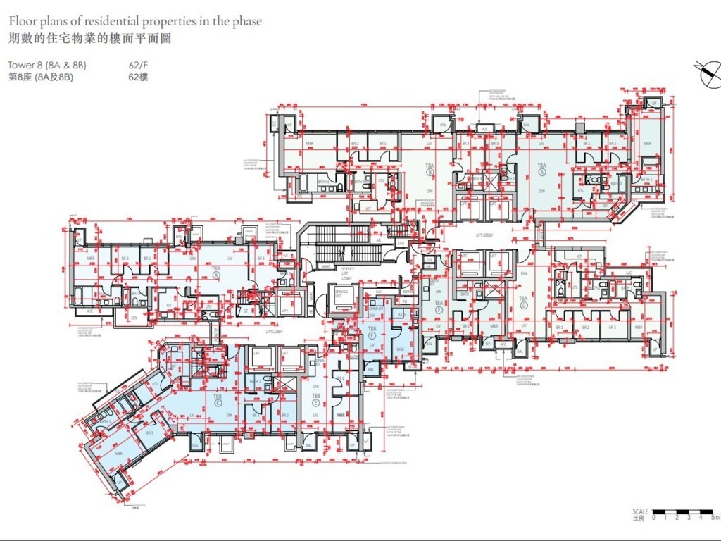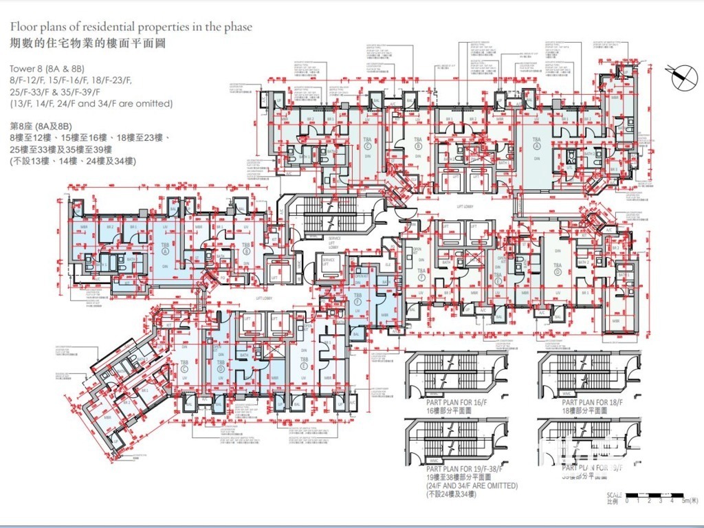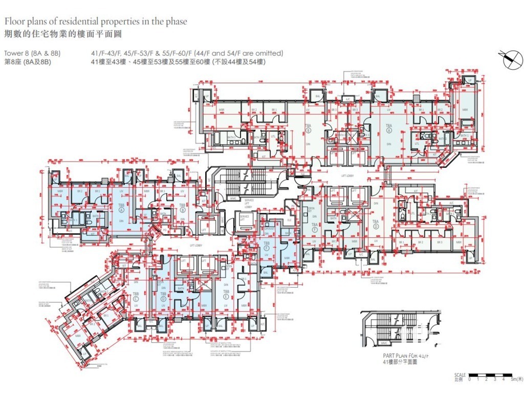 至於8A及8B座密度較高,以兩座8至39樓為例,屬1梯12伙設計,並設7部升降機;而41至60樓為1梯10伙。