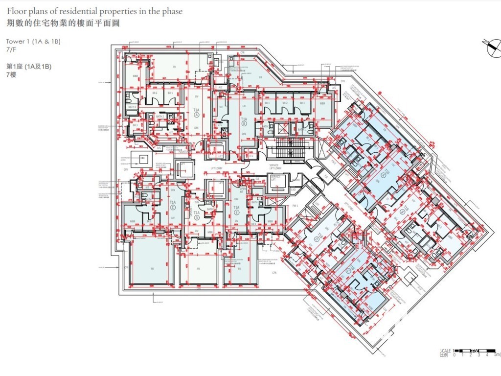 根據樓書,柏傲莊III分2座,分別為第1A、第1B及第8A及第8B座,實用面積由285至1695平方呎,戶型涵蓋1房至4房。以1A及1B座7樓至29樓為例,兩座相通,採1梯9伙設計,並設有5部升降機,而31至50樓則屬1梯8伙。