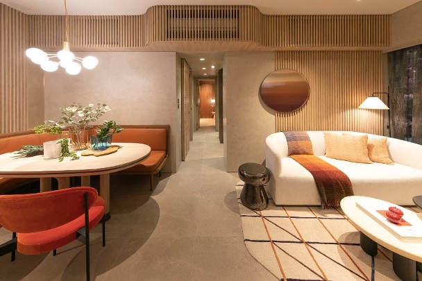 同時,項目亦設兩個交樓標準示範單位,其中根據8A座48樓B單位打造的四房連雙套房戶,實用面積1,269方呎,大廳連接面積31方呎露台。