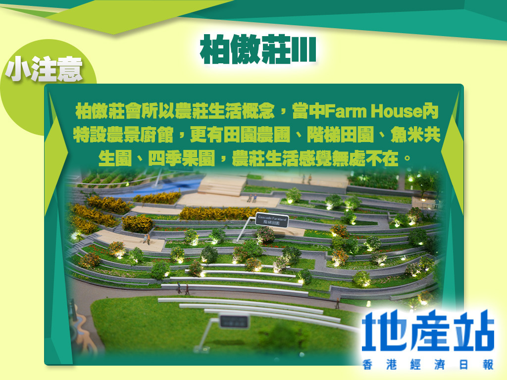 而項目會所亦特設農莊生活概念,面積超過5.9萬平方呎,另有逾21.萬平方呎的園林空間,戶外空間充裕。會所除了常見設施外,更特設魚米共生園、四季果園等,農莊生活感覺無處不在。