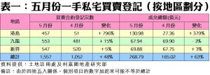 五月一手私宅買賣1,557宗 拗腰反彈48% 涉$269億創2年新高 本月登記續看俏