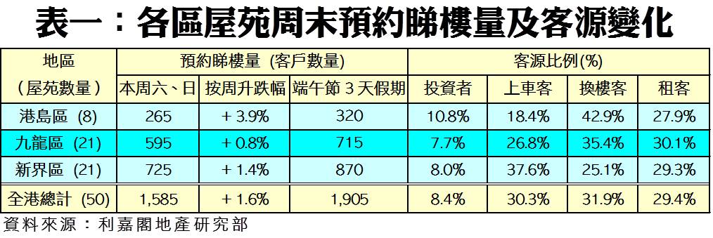 熾熱氣氛未退 買家積極查詢問盤 50屋苑端午節周末預約睇樓量升1.6%