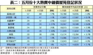 以十大活躍成交地區作分析,上月全港十個中細價二手住宅買賣登記量最活躍地區的登記宗數錄得九跌一升。當中以沙田區跌勢最急,上月僅錄155宗,按月挫24%;而登記量較多的元朗區及將軍澳區亦分別跌21%及19%。至於登記量最多的屯門區,上月亦只錄得293宗登記,按月也大減20%(詳見表一),反映中細價樓交投轉弱。