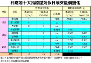 《利嘉閣十大指標屋苑假日二手實況》 二手供應少價格升 料樓價快將創歷史新高 十大屋苑周末13宗買賣 按周減少2宗