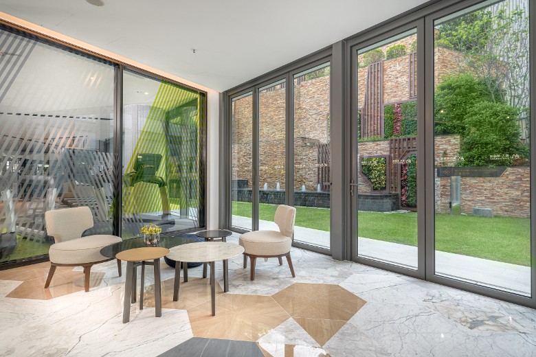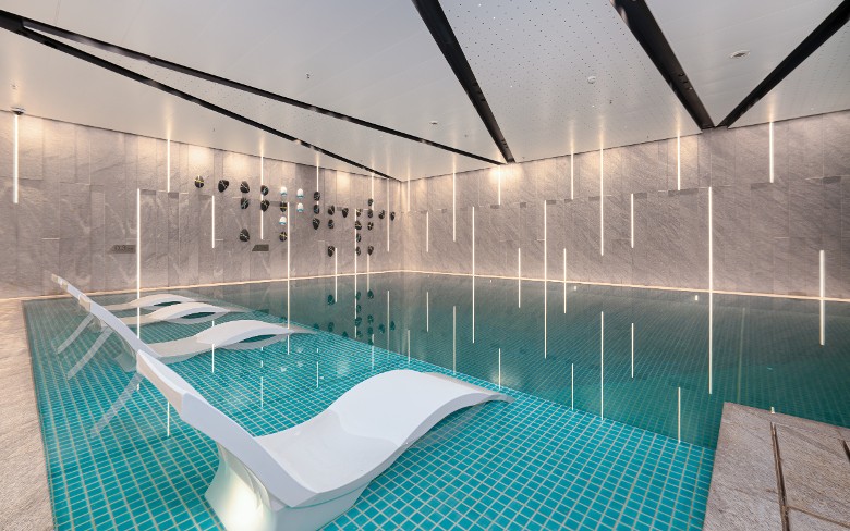 項目會所「珺悅薈Emerald Club」,樓面近3萬方呎,提供健身房、室內恒溫游泳池、VR遊戲室、VR健身器、兒童遊戲室、動感單車訓練室,以及長約50米的室外游泳池等。