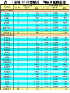 50指標屋苑上周買賣錄161宗 續窄幅上落