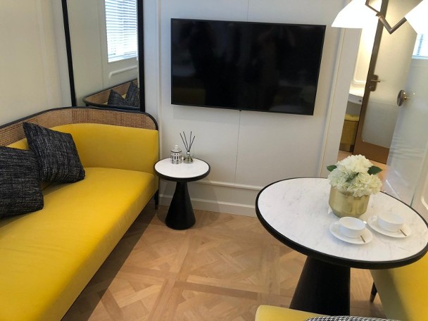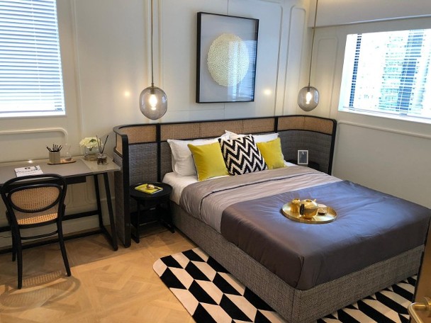 單位套房面積240方呎,其中睡房部分為190方呎,可放雙人床及三邊落床,而房內亦設入牆式大衣櫃。浴室面積則約50方呎,設有浴缸。