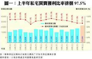上半年私宅轉手獲利比率97.5% 創5年低 每宗轉手平均賺幅僅73.4% 低位徘徊