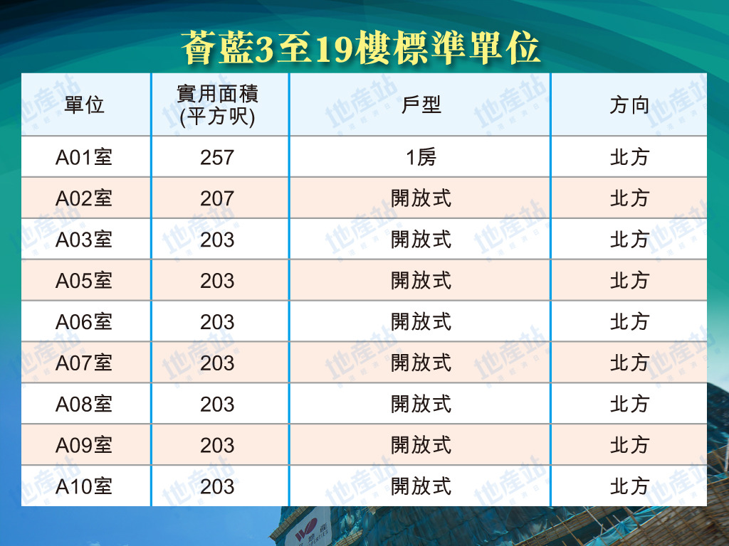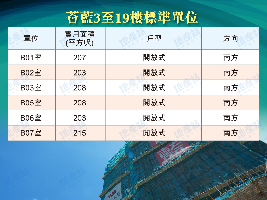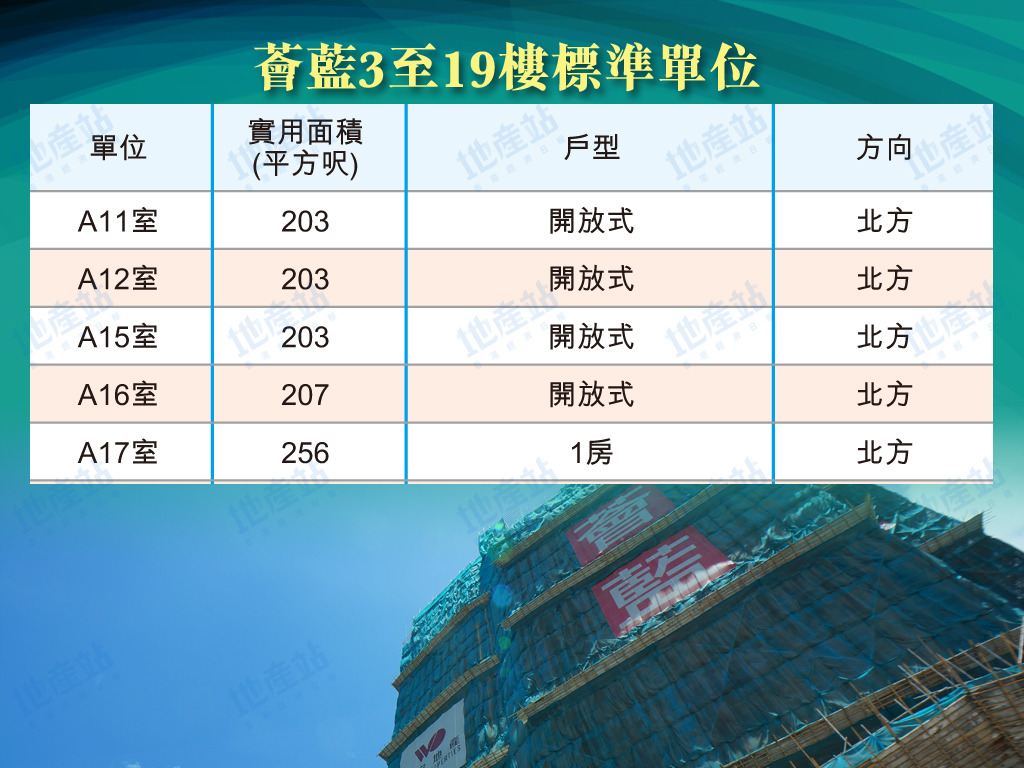 薈藍1座住宅大樓設計,標準單位樓層3至19樓為例,1層20伙設計,全層享3部升降機,包括18伙開放式單位及2伙1房單位。薈藍點揀樓好?有興趣買薈藍的準買家,考慮單位戶型及單位方向便可以!