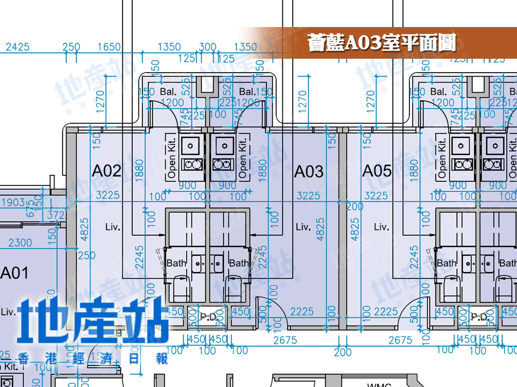 薈藍開放式單位長廳長約4.8米,開放式廚房設於近露台位置,設有可開啟的窗戶。