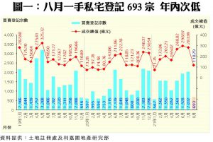 八月空窗 一手私宅買賣693宗 挫66% 大盤起動連番沽清 本月登記望破2,200宗