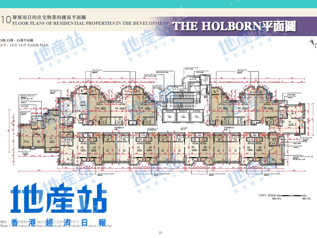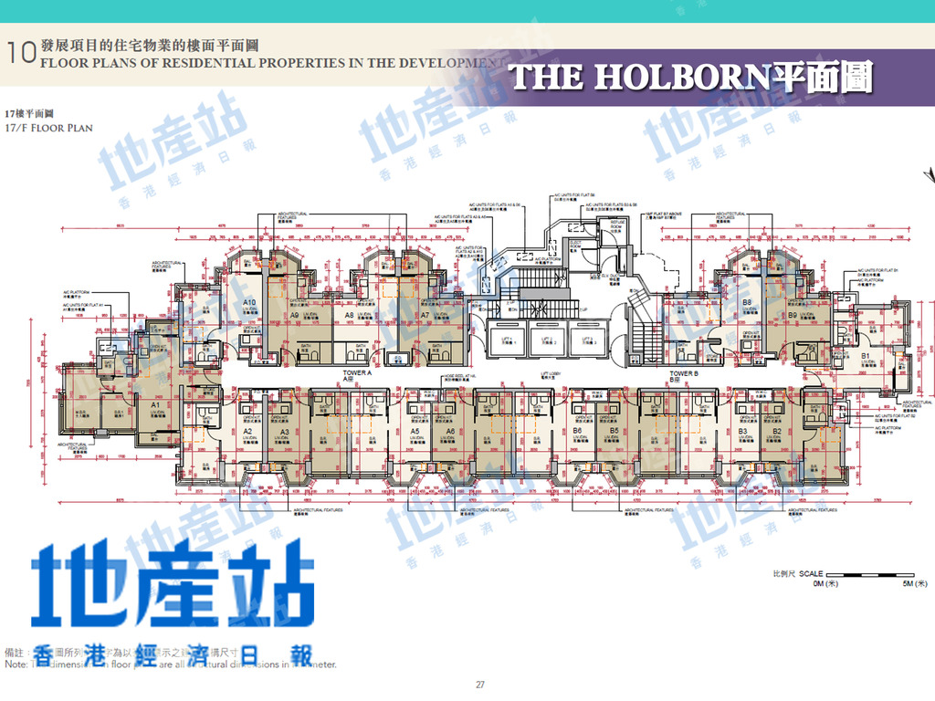 THE HOLBORN住宅共31層,拆分A及B兩翼,當中5至12樓、18至31樓標準樓層為例,1層17伙單位設計。若以方向劃分,可將THE HOLBORN細分為3種方向單位,包括東北、東南及西南方單位。