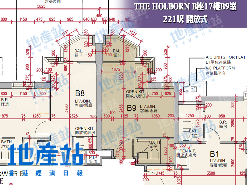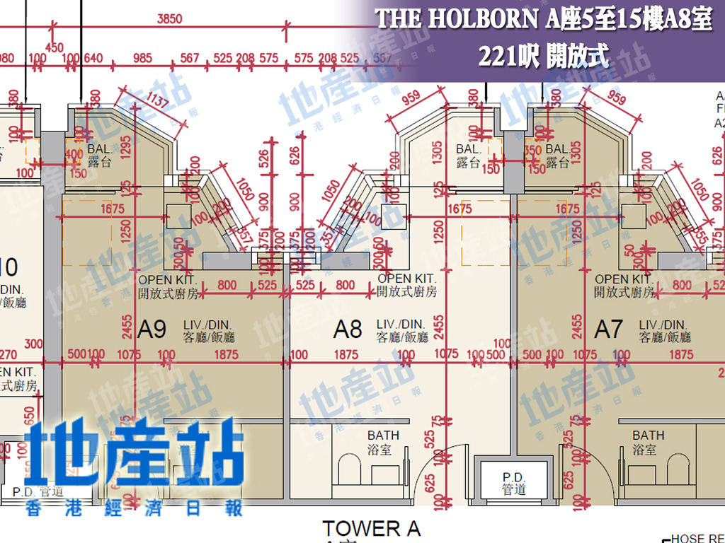 THE HOLBORN正望東北方單位涉及7款室號,包括A7至A10室、B7至B9室單位,除A10室屬於1房間隔外,其餘屬於開放式單位。