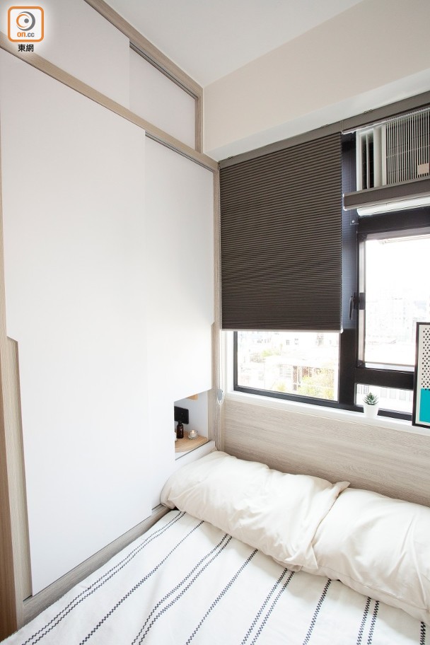 戶主睡房面積較為少,故在衣櫃劃分一個小空間,擺放電話充電及個人物品。