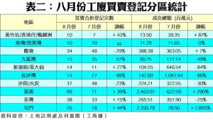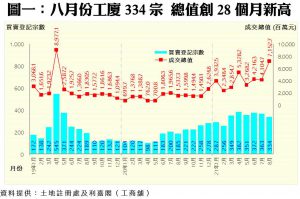 八月工廈買賣高企於334宗 惟連月微跌 全幢交投增 登記金額71.5億元 28月最多