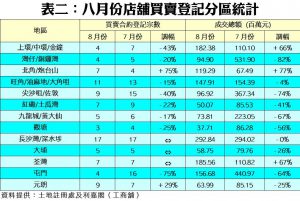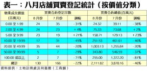 八月店舖買賣登記稍回氣至130宗 零售消費仍旺 本月登記量料跑贏大市