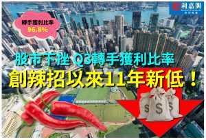股市挫 Q3私宅轉手僅96.8%獲利 創下引入樓市辣招十一年以來新低