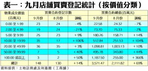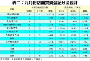 九月店舖買賣登記148宗 反彈14% 假日多兼逢打風 本月登記量料再受壓
