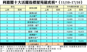 利嘉閣地產董事陳大偉表示,二手市場已淡靜多時,部分心急業主態度稍為回軟,願意擴大議價空間,各區購買力隨即釋放。加上近日本地股市回暖,刺激成交加快。綜合利嘉閣地產分行數據所得,全港十大活躍指標屋苑在上周(11/10–17/10)錄48宗買賣個案,較前周(4/10–10/10)的15宗按周急增220%,平均每個屋苑錄4至5宗成交。