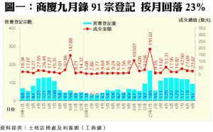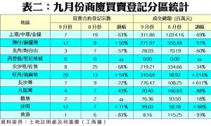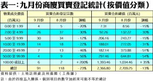 雖然九月份登記量挫逾兩成,惟金額只跌13%,跌幅相對輕微,當中原因是九月份1億元或以上商廈登記大增兩倍所帶動,刺激月內商廈買賣登記金額錄約23.67億元,跌幅相對登記量為少。至於,九月份最矚目的單一登記項目為荔枝角道888號21樓全層,涉及合約金額逾3.55億元;其次為同座商廈18樓全層的逾3.33億元登記。