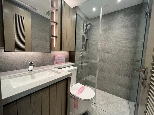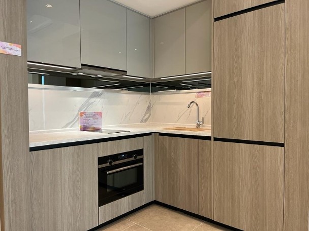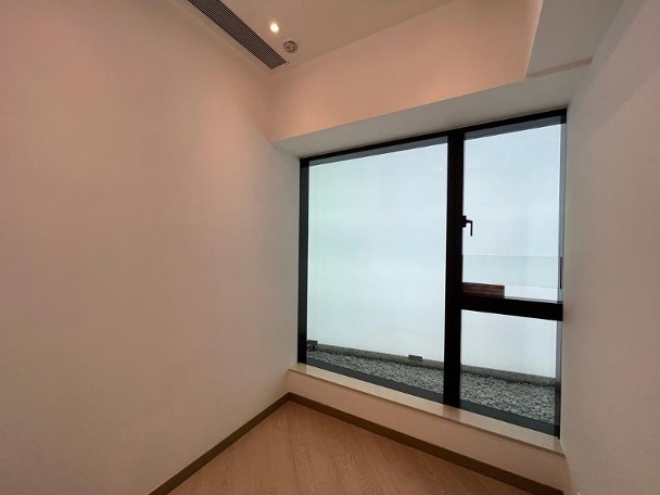 單位大門右方設置木製收納櫃,附有無線手機充電器。客飯廳以長形開則,外連23方呎露台。廚房採開放式設計,配備德國及意大利品牌家電,包括微波蒸焗爐、抽油煙機、雪櫃等。浴室方面,設有鏡櫃及淋浴間。而兩間睡房則有大玻璃窗,有助將室外光線引入室內。