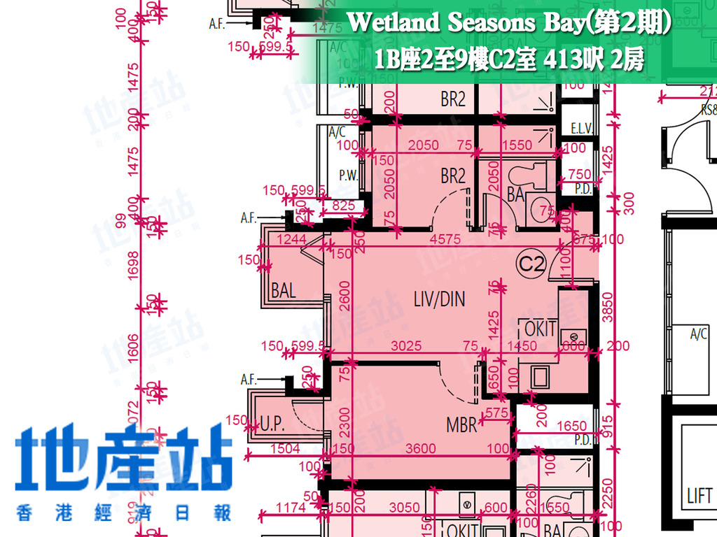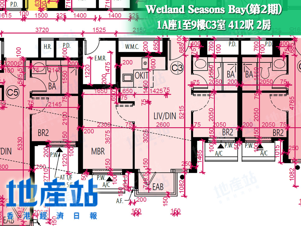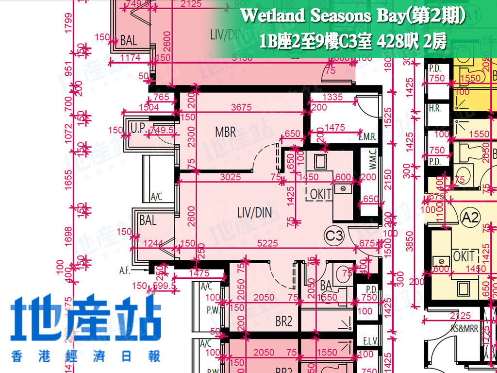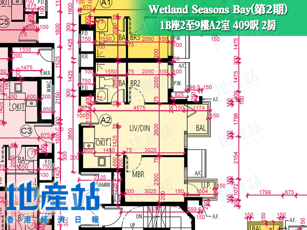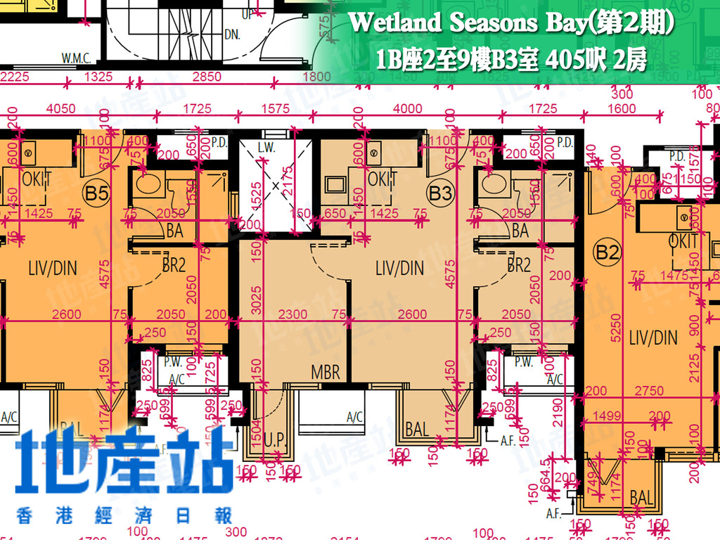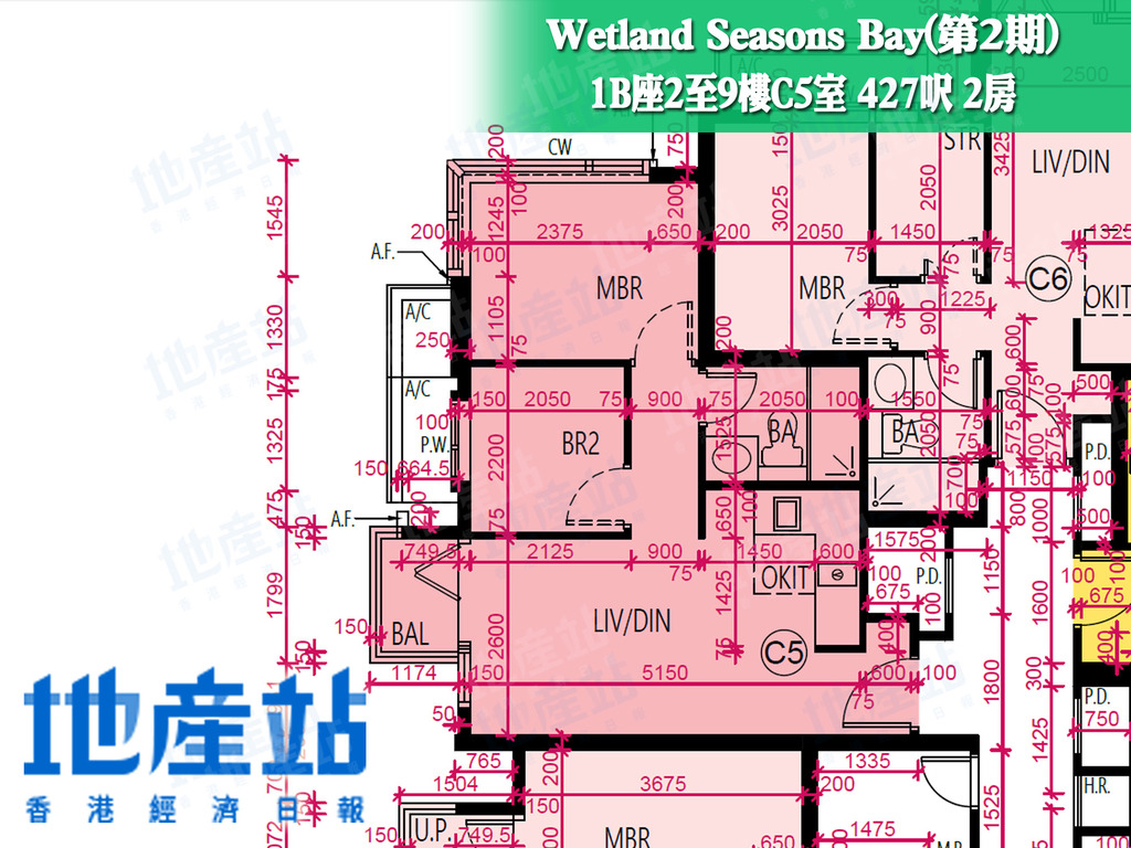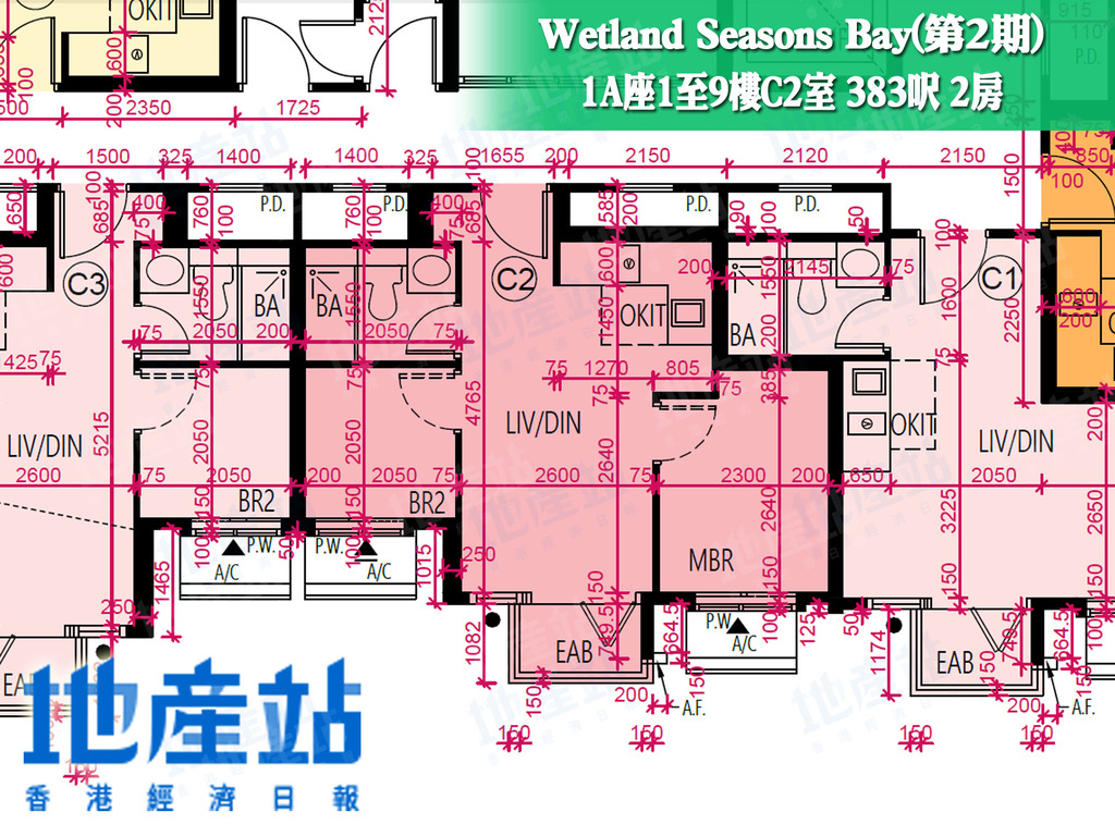 Wetland Seasons Bay第2期第1A座、第1B座C2至C5室單位,則以外圍樓景及街景為主,面向別墅景或較佳景的則要考慮第1A座A2室、1B座A2室,屬於無走廊2房單位。