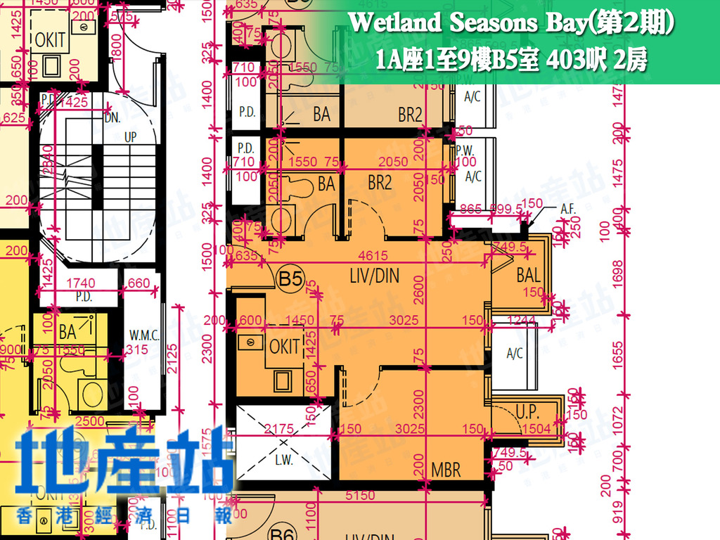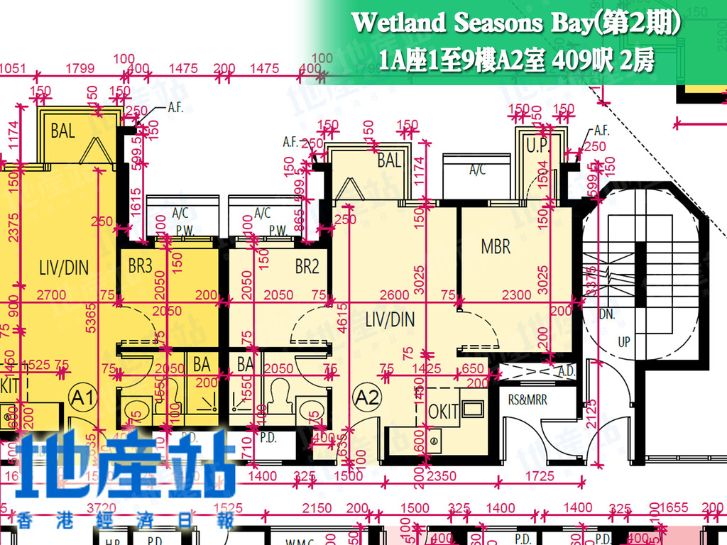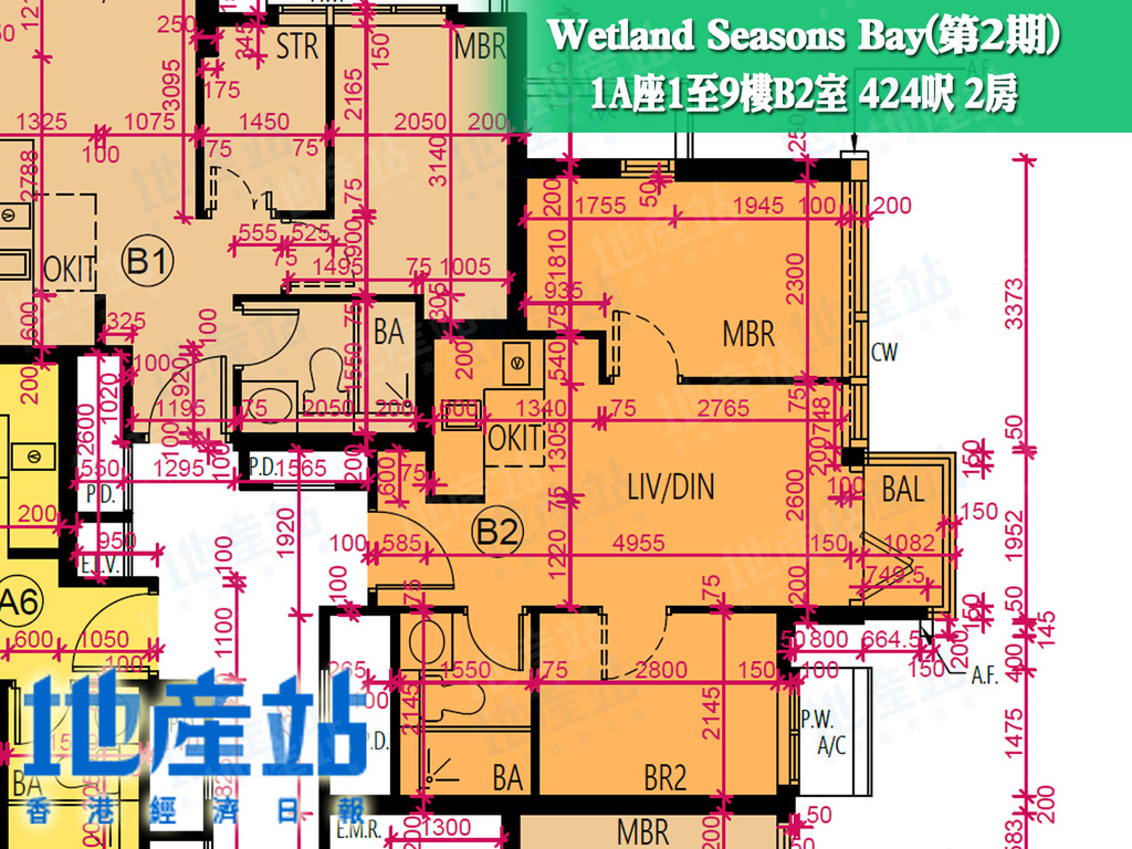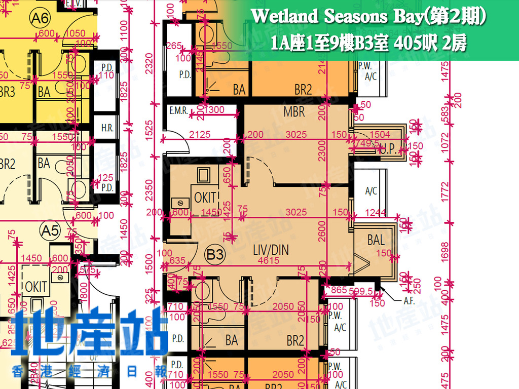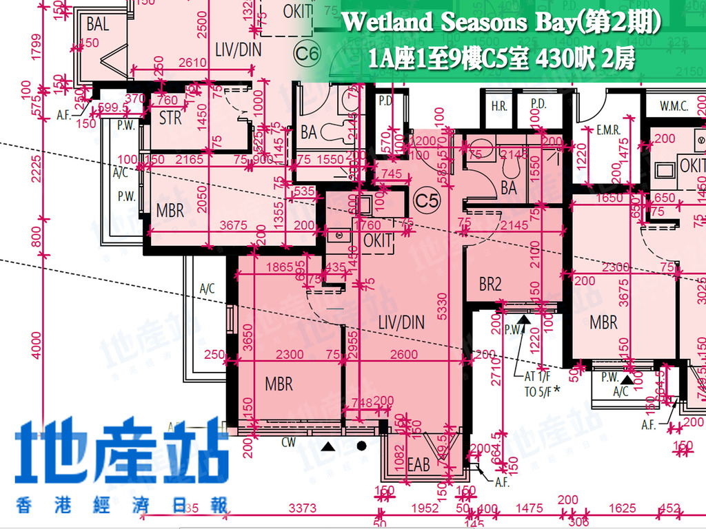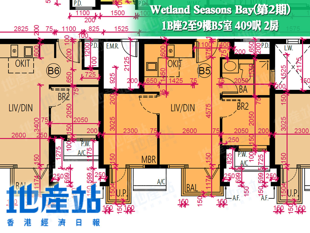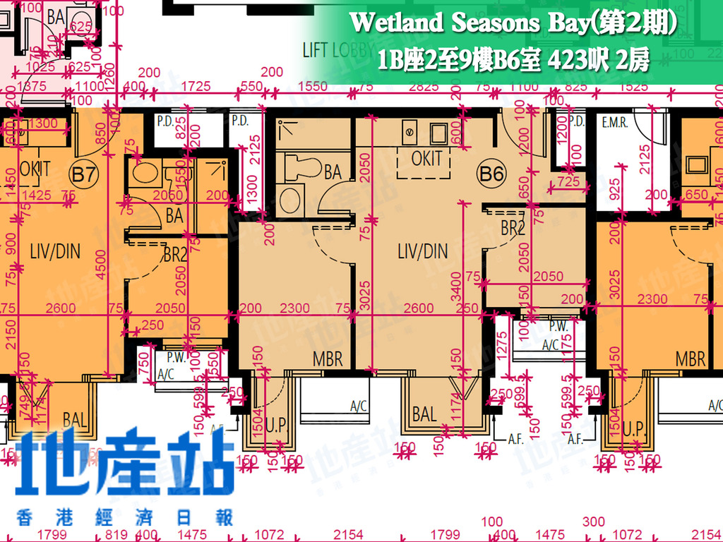 Wetland Seasons Bay第2期第1A座、第1B座C2至C5室單位,則以外圍樓景及街景為主,面向別墅景或較佳景的則要考慮第1A座A2室、1B座A2室,屬於無走廊2房單位。