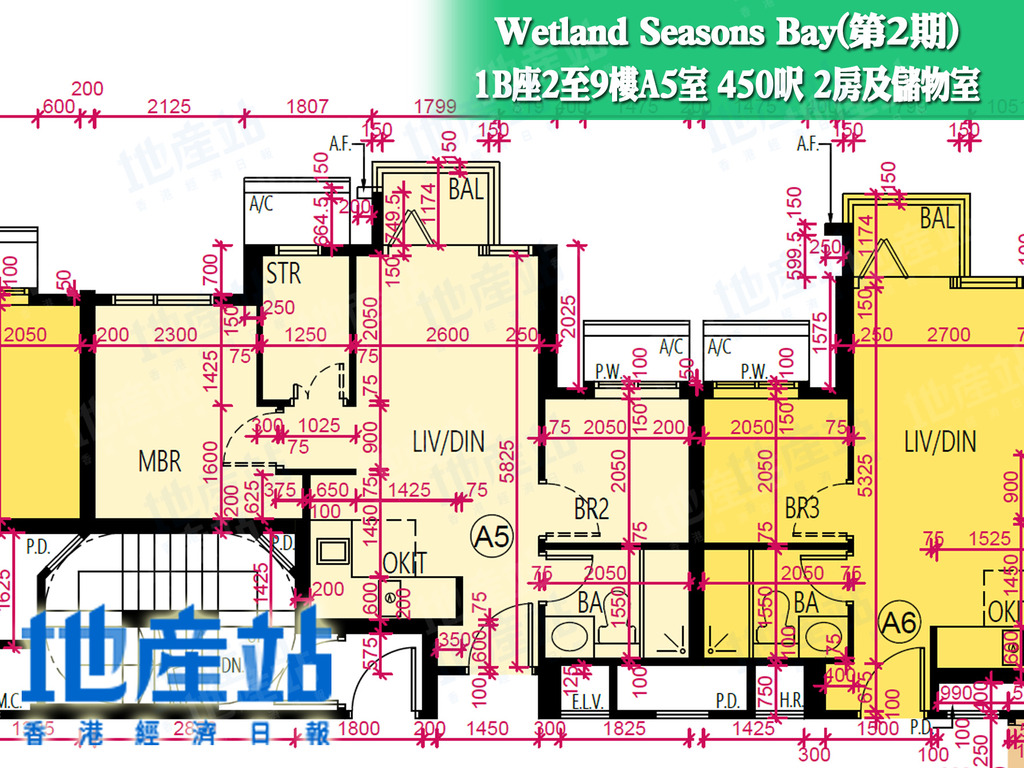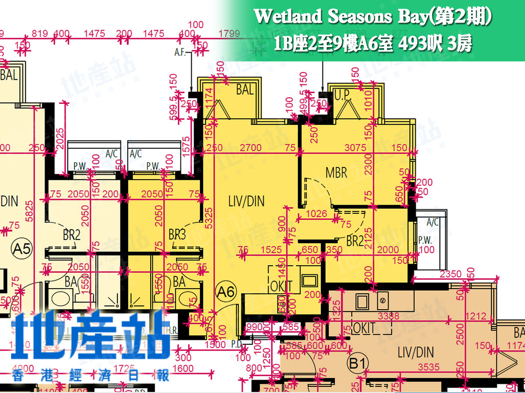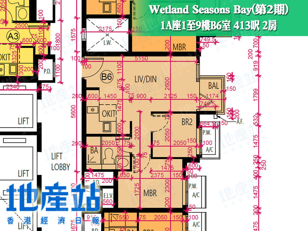 Wetland Seasons Bay第2期A6室3房單位,開則似,惟第1A座A6室面積512平方呎,廳區連玄關實長約6.65米,廳闊約2.7米。
