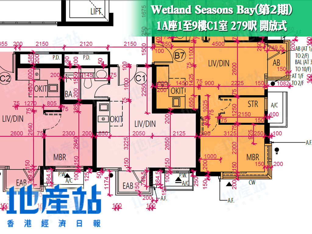 Wetland Seasons Bay第2期同樣提供天水圍罕見的私樓開放式單位,但供應亦不多,只在1A座C1室、1B座C1室,面積267至279平方呎,開則相似,面積差別主要在於有否玄關位,惟單位同樣面向街景或樓景,景觀較一般。