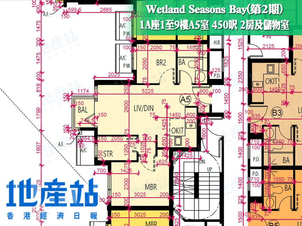 Wetland Seasons Bay第2期2房及儲物室供應不算多,散落在第1A座、第1B座A5室及B7室單位。Wetland Seasons Bay第2期A5室入屋設玄關,一邊設小櫃,一邊設浴室,長廳布局,睡房2在廳區一邊,而儲物室及主人睡房則在睡房另一邊;Wetland Seasons Bay第2期B7室單位,開則類似,較大特點在於主人睡房設有L形窗。