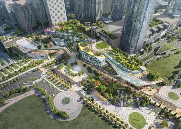 中標的設計方案建議興建3座建築物,建築群外觀旨在突顯香港作為亞洲國際城市的形象。當中,最接近海濱的建築物將作多用途之用,另外2座則作辦公室用途。建築物之間將預留間距提供多條通風廊及都市窗戶,為發展項目帶來自然通風及自然光。項目將設公眾休憩空間,面積超過招標文件所要求的最少2.5萬平方米。天台將設有一個名為「Horizon Park」的相連平台串連起3座建築物,公眾可在平台上多角度眺望中環景緻和維港景色。平台將以植物營造空中森林,同時提供草坪、緩跑徑及戶外空間予公眾使用。設計方案亦建議串連起中環現有的行人網絡,由內陸一直連接中環海濱及周邊地方,並提供一條行人通道由中環港鐵站接駁至發展項目。
