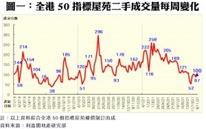 利嘉閣地產董事陳大偉表示,受惠個別業主願意降價,吸引資金重新流入,而且獲一手向隅客支撐,令二手屋苑交投在低基數下有輕微改善,惟整體市況仍屬牛皮拉鋸。綜合利嘉閣地產分行數據所得,全港50個指標屋苑於上周(8/11—14/11)共錄100宗買賣個案,較前周(1/11—7/11)的87宗增加15%,創近三周新高。