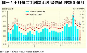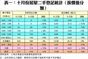 如按屋苑細分(見表二),十月份火炭穗禾苑錄7宗買賣,按月大減42%,跌幅最為顯著;至於,九龍灣麗晶花園成為上月成交最活躍的居屋屋苑,期內共錄16宗買賣,按月逆市增加23%,而成交總值逾0.99億元,按月急增41%。
