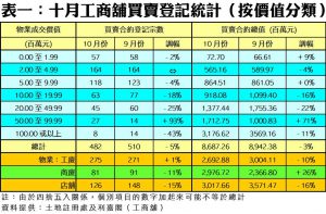 至於店舖買賣登記量方面,十月份因有施政報告因素,屬觀望政策市的走勢,買賣交投顯得較為審慎,因而導致月內店舖買賣登記量落後大市,成為工商舖三大範疇之中跌幅最大的類別。十月份店舖共錄126宗登記,按月挫15%;而跌幅主要集中在介乎500萬至5,000萬元以內的3個中低至中高價店舖組別,各組跌幅介乎逾兩成至三成多之間;而月內買賣登記總額也相應跌16%,錄30.18億元。