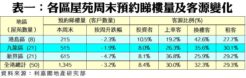 二手平盤欠奉 新盤登場搶客 50指標屋苑周末預約睇樓量下跌3.2%
