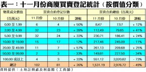 扭轉兩連跌 11月商廈買賣登記重越百宗 股市續挫 買家審慎 本月料再喘氣跌一成