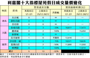 利嘉閣地產總裁廖偉強表示,由於本港新冠疫情再現變化,加上受到新盤市場及節日氛圍等因素影響,拖累二手市場表現。綜合利嘉閣地產分行網絡數據,在過去的元旦周末日(1月1日至1月2日)十大指標屋苑累錄5宗二手成交個案,與上周末(12月25日至12月26日)的13宗比較,減少8宗或約62%,除重返單位數字外,更創下近8周以來新低。