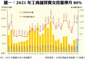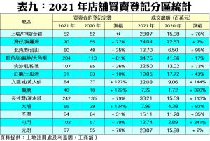 鄭得明相信,店舖市道在2019及2020年的最壞時刻已經過去,因為去年全年按月至少也有逾120宗買賣登記的水平,復甦勢頭明顯;鄭氏稱2022年倘若平均每月能錄逾160宗登記,預期全年店舖買賣登記量可望上升逾一成,達2,000宗,除連升3年外,更料創近8年來的高位,而涉及登記總值更料大增兩成,至約420億元的水平,挑戰5年最多。