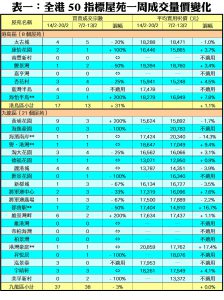 至於,九龍區21個指標屋苑上周共錄37宗交投,按周減少1宗或3%,其中新都城及將軍澳廣場上周分別錄得1宗買賣,各自按周減少67%;都會駅期內亦只錄得1宗買賣,較前周的2宗減少50%;淘大花園及將軍澳中心的交投量,分別按周減少25%及33%,上周各錄3宗及2宗成交。此外,在全港50個指標屋苑當中,上周共有14個屋苑錄得「零成交」,較前周的13個增加近8%,當中九龍區及新界區各佔7個及5個,港島區則佔2個(詳見表一)。