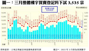 陳海潮表示,第五波疫情一發不可收拾,確診人數單日以萬計,令發展商全新盤無法應市,一手表現尤為疲弱;而整體市場氣氛轉淡,亦拖累工商舖及其他類別物業之交投,並以店舖最為嚴峻。至於二手私宅方面同樣低迷,幸好預算案進一步放寬承造按保樓價上限,料可令本月交投不致進一步下跌而轉趨平穩,惟亦難抵一手住宅及工商舖之跌幅。綜合上述情況估算,預期三月份整體樓宇買賣登記量將進一步下跌,料按月再錄逾一成的跌幅,下試3,535宗,有機會創自2019年一月以來的39個月(逾3年)新低。