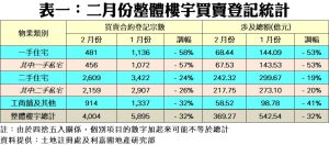 至於非住宅市場方面,在純車位的登記持續大跌近四成,以及店舖登記亦應聲急挫逾四成拖累下,加上商廈及工廈登記亦各瀉逾兩成及近一成的全線回落下,結果二月份整體工商舖及其他買賣登記終失守千宗大關,只錄得914宗,較一月的1,337宗減少32%;而月內買賣登記金額更按月大跌41%,只錄得58.52億元。
